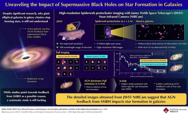 “The Spiderweb protocluster has been studied by our team for more than 10 years using the Subaru Telescope and other facilities. With the new JWST data, we are now able to ‘answer the questions’ of understanding and predicting galaxy formation that we have accumulated,” remarks Dr. Shimakawa. He adds further, “This study marks a significant step forward in expanding our understanding of the co-evolution of SMBHs and galaxies in celestial cities.”