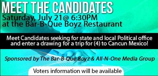 Join the Bar-B-Q Boys and All-n-One Media Group as they host a “Meet the Candidates BBQ” on July 21, 2012 at the Bar-B-Q Boys Restaurant 6405 Raleigh St Orlando, Fl 32825 at 6pm!