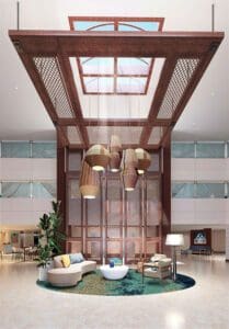 Texture provides the base backdrop of visual interest including limestone and coral as the primary architectural materials. Rope accents seamlessly border areas as a reference to Florida’s plentiful waterways and relaxed beach lifestyle. Thoughtful lighting highlights local artwork and artistically designed walls. Deeply saturated colors are balanced by cool blues and crisp whites throughout the hotel.