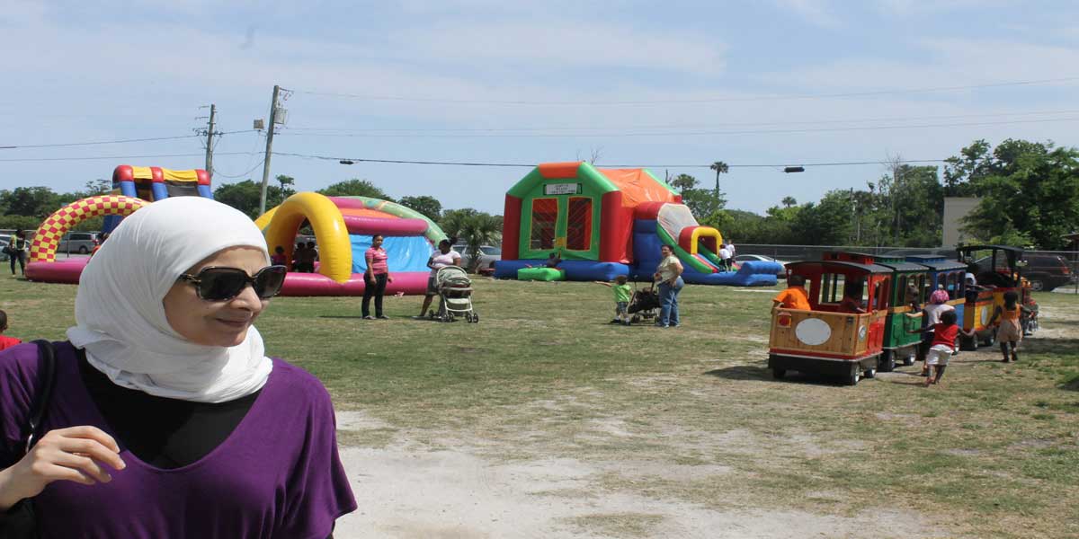 It was held at the Islamic Center of Daytona Beach located at 347 South Keech Street on Saturday, and ran from noon until 4:00 p.m. To the left of the Center was a large field filled with the sounds of laughter from the future leaders who were climbing towers, sliding down tall slides, and bouncing in the “bounce room.” A Choo-choo train made regular rounds around the play area. An Ice Cream Truck was on standby.
