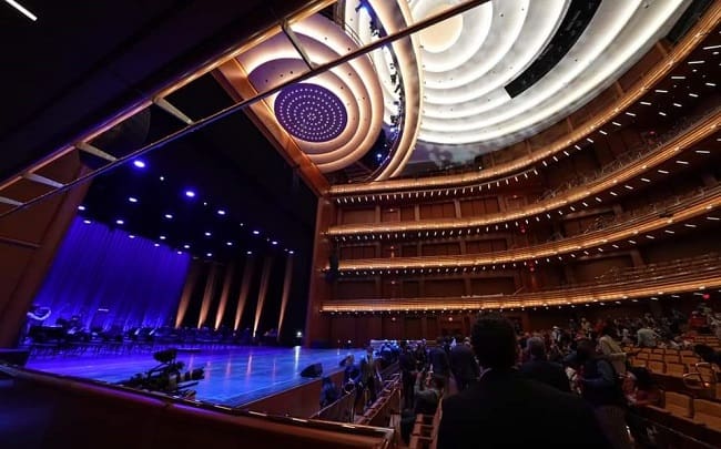 In keeping with the center’s vision of Arts For Every Life®, all guests will continue to enter the arts center together through one main entrance and then traverse to their desired destination on the appropriate floor. Steinmetz Hall‘s lobby will feature a wave wall painting the entire lobby in color, accented by the lobby’s warm copper handrails and theater doors.