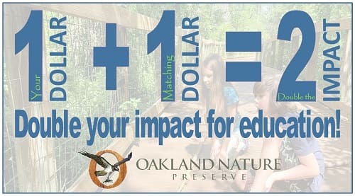 Oakland Nature Preserve has announced that they have received a Challenge Match Grant for their environmental education programs. This grant will provide matching funds of $10,000 if they are able to raise $10,000.