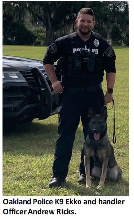 The pair have been working together for nearly a year and have become a great asset to the Oakland Police Department, the Town of Oakland and neighboring jurisdictions.