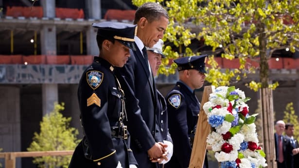 President Barack Obama on Thursday solemnly honored victims of the September 11 terror attacks in New York, several days after the killing of Osama bin Laden, the Al Qaeda leader responsible for the deaths of close to 3,000 people on American soil nearly 10 years ago. Obama did not speak publicly, but he laid a wreath at the National September 11th Memorial and spoke privately to family members. He also spoke privately to police officers from the city and firefighters at the at the “Pride of Midtown” Firehouse, Engine 54, Ladder 4, Battalion 9 — which lost 15 firefighters at the World Trade Center.