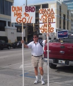 Nowhere was this more evident than in Downtown Orlando over Saturday and Sunday, January 22nd and 23rd. With the Republican Primary election only a week away a group calling itself Conservatives United 2012 planned a large rally at the Walt Disney Amphitheater in Lake Eola Park with spectacular speakers like Samuel Wurzelbacher aka known as Joe the Plumber, former Congressman and State Attorney General Bill McCollum who spoke as if he needed a heavy dose of Ritalin and keynote speaker Herman Cain who proved why Vaudeville is dead and not coming back. The attendance figures were disappointing to say the least. Under 400 people were in the space but take out the security teams the candidate staffs the event staffs, vendors and sponsors booths and the event was lucky to attract 200 people including the bused in people from West Palm Beach and out of that there were at least 20 people from Occupy Orlando on the premises taking it all in. The only non-white faces we saw were, obviously, Herman Cain, a few occupiers and some picnickers walking through. A couple of local candidates were collecting signatures. Rick Santorum had a local team on the ground but the feel of the event was definitely directed towards Newt Gingrich. It was his collective memory challenged crowd that was there cheering on every utterance of McCollum’s almost incoherent rant.