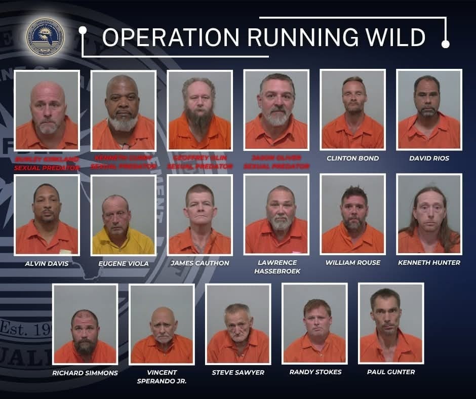 The investigation led to 17 suspects being apprehended, including 13 sexual offenders and four sexual predators. Those arrested in Operation Running Wild included: