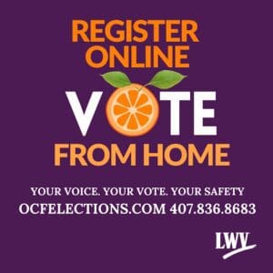 Pickar also notes that it’s easier than ever to harness digital tools to help with voting right now. To register online or request a vote-by-mail ballot in Orange County, contact the Orange County Supervisor of Elections at (407) 836-8683 or online here. If you have questions about voting by mail, the LWVOC has more information in their “Voting Info” section, or refer to your county Office of the Supervisor of Elections for guidelines.