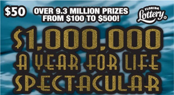 The $50 scratch-off game, $1,000,000 A Year For Life Spectacular, features two top prizes of $1 million a year for life and 234 prizes of $1 million. Additionally, this ticket is filled with more than $1.6 billion in cash prizes. There are zero top prizes remaining in this scratch-off game, and there are 57 $1,000,000 prizes remaining according to the Florida Lottery.