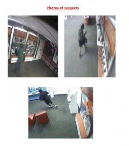 These individuals smashed out the glass front door to the business. These individuals then entered the store and removed cell phones, iPads and other electronics which were on display throughout the store.