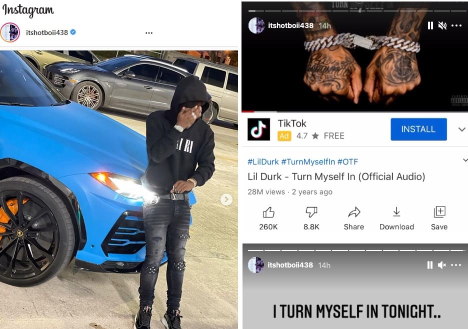 Hotboii had apparently been sharing pictures on social media, leading some fans to believe he was on the run. He apparently also shared a video of himself listening to Lil Durk’s song “Turn Myself In” and adding another post saying, “I turn myself in tonight..” The 21-year-old then reportedly turned himself in on R.I.C.O. charges. He is even receiving messages of “Free HotBoii” on his social media.