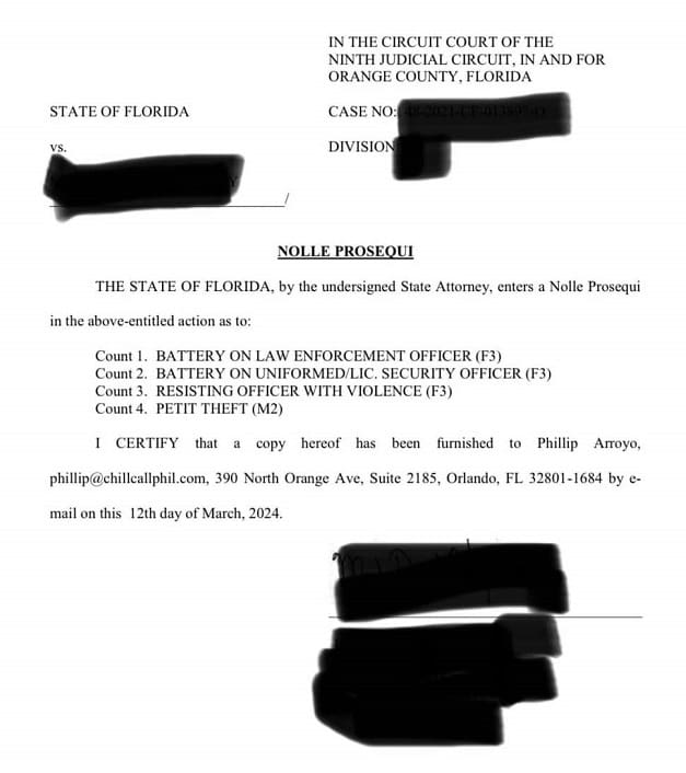 An Orlando law firm was able to get the case dropped for a client facing prison time for battery and petit theft charges from Universal Orlando Resort.