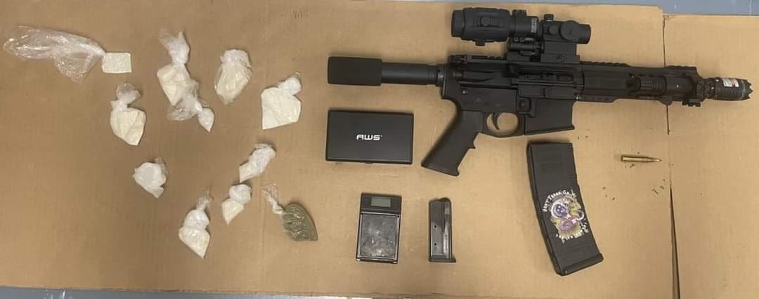 Approximately 150 grams of Cocaine, 4.7 grams of Methamphetamine and 10 grams of Cannabis were located in the vehicle along with an AR Pistol.