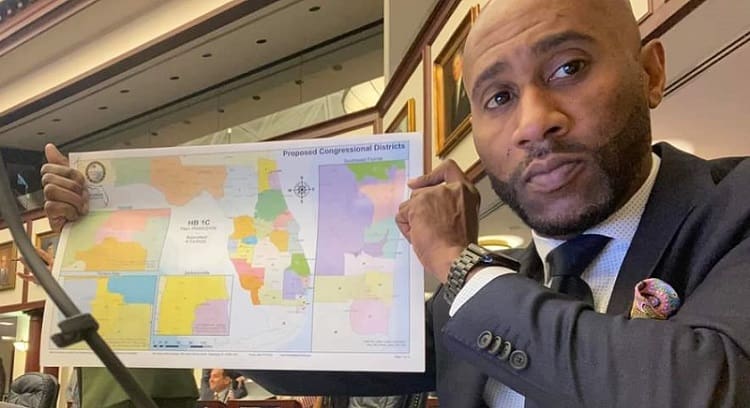 During the last special session, Orlando State Representative Travaris McCurdy joined Jacksonville Rep. Angie Nixon to lead a protest against Governor Ron DeSantis’ unprecedented manipulation of the Florida Legislature to abdicate their constitutional duty to draft a constitutional congressional map. Of course, Republican leaders passed the Governor’s new proposed map that will rig districts to favor the GOP and slash Black representation in congress, but not before the Democratic Representatives shouted “Stop the Black Attack” on the House floor (see photo below).