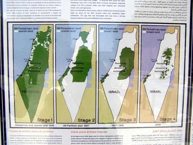 Ever since 1948 when 750,000 Palestinians were displaced after the establishment of the State of Israel, the land that is called Palestine has gotten smaller and smaller. A UN partition plan after WWII and the 1949 Armistice (the Green Line) started the disintegration but the war of 1967 resulted in Israel occupying Gaza, the West Bank, the Sinai Peninsula, East Jerusalem and the Golan Heights. And since that time, in gross violation of international law, Israel has built separation walls, check points, Jewish settlements, gates, towers, and Israeli-only roads. They have also demolished Palestinian houses and put thousands of Palestinians in jail under the title of Administrative Detention, meaning without due process. All of this combined with the military occupation of Palestine has affected the daily lives of Palestinians in ways that we Americans cannot imagine.