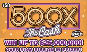 The $50 scratch-off game, 500X THE CASH, features over 10 million winning tickets, with a top prize of $25 million. This ticket offers more than $1.66 billion in total cash prizes.