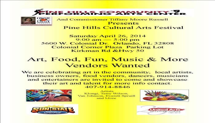 The Pine Hills Performing Arts Center will hold a Cultural Arts Festival on Saturday, April 26, from 9:00 a.m. to 5:00 p.m.