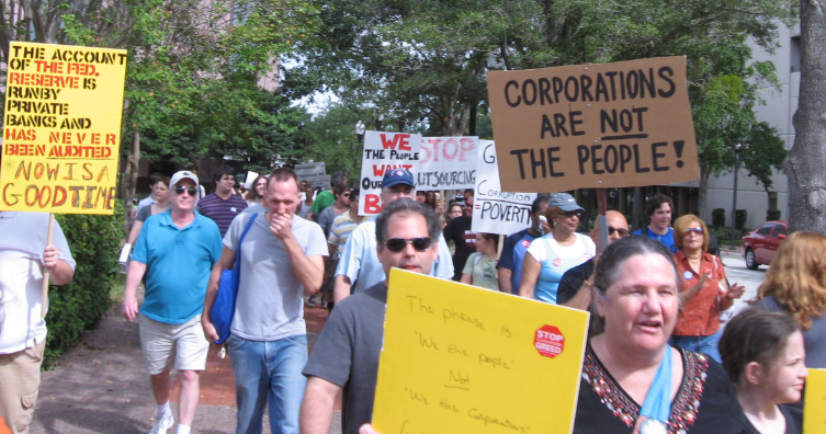 On Sunday, protesters held a “People Over Profits” march which saw more than 1,000 persons in attendance, most carrying signs in solidarity with Bank Transfer Day, which was held on November 5.