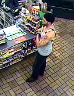 The suspect is described as a Hispanic male, approximately 30-year-old, about 5′ 10″ tall and weighing approximately 190 pounds. He has a distinct tattoo on his left shoulder, police said.
