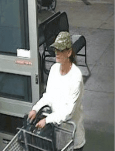 According to police, on June 2, the woman entered the Wal-mart located at 7450 Cypress Gardens Boulevard around 11:30 p.m. She was wearing a white long-sleeved shirt with a fish design on the back, blue jeans and a camouflage baseball cap. She has brown hair past her shoulders pulled back in a ponytail and was carrying a large black purse.