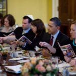 President Barack Obama and the First Family mark the beginning of Passover with a Seder with friends and staff in the Old Family Dining Room of the White House, March 29, 2010.