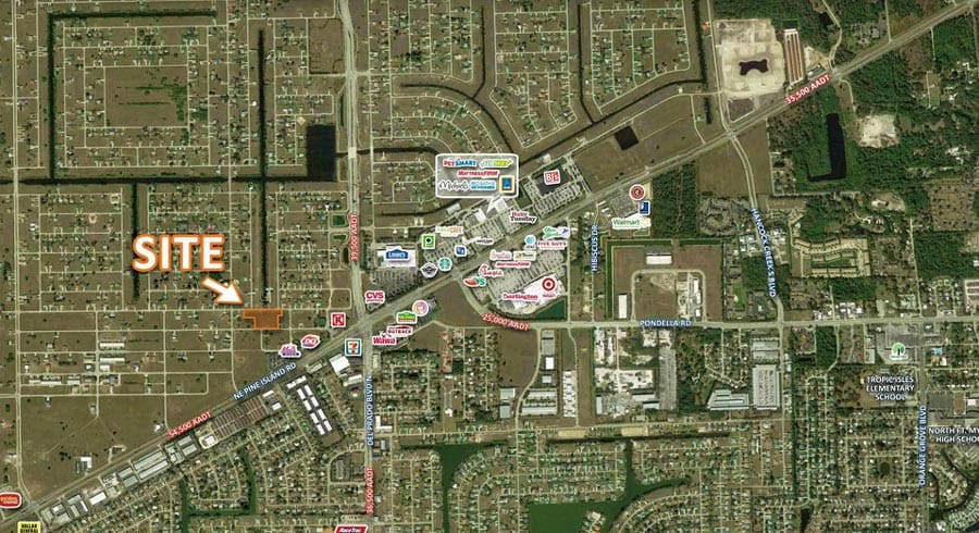 There is an opportunity for development as 2.18± acres located off of Pine Island Rd. and Del Prado Blvd. in Cape Coral in Southwest Florida is for sale with a price drop.