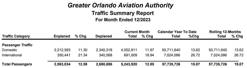 All the numbers are in and in 2023, MCO experienced a 15 percent increase in overall traffic, bringing the total number of passengers to an historic 57.7 million for the year.