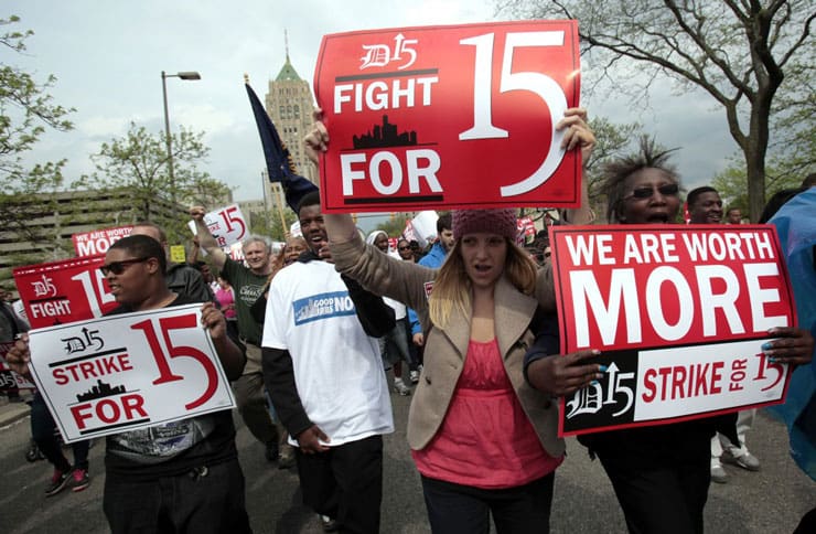 Seattle and San Francisco have already adopted a $15 minimum wage, and workers have rallied in New York, Los Angeles and Washington, D.C., and in Oregon and Delaware for the same. The campaign has made successful inroads in the private sector as well. Insurance giant Aetna, Johns Hopkins Medicine and the University of Rochester have all raised their base pay to close to $15 an hour.