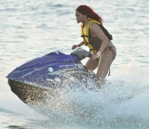 Rihanna hopped on a jet ski and took a ride on Monday, December 27, while vacationing in Barbados.