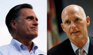 Gov. Rick Scott joined Republican presidential candidate Mitt Romney at a campaign stop on Monday morning in St. Augustine and while he continued to talk up Florida’s economy, he said his job would be easier if Romney were in the White House.