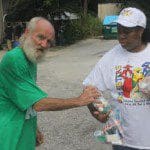 Serenity Chapter #118 pulled into the parking lot at about 11:30 and began distributing bags to a waiting contingency of homeless people waiting outside for any assistance they could get. That assistance also came in form of peanut and butter and jelly sandwiches prepared by the sisters with love. Yours truly personally jumped into the fray with a boxful of the sustenance.