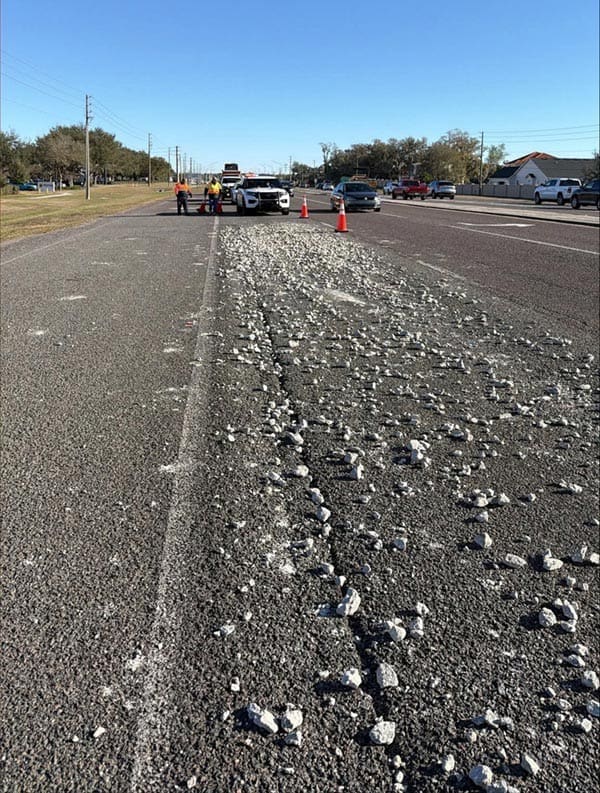 A “significant amount of rocks” spilled on a Central Florida road causing a Lakeland traffic problem.