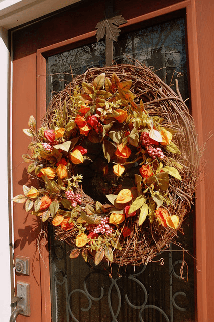 We all know you can never go wrong with candles, so choose them in the size and shape that best suit you. Place the candles in clear cylinder vases adding in acorns, walnuts, twigs and even leaves for contrast. This lends to the rustic, cozy fall feel you’re looking to achieve in your home. Also don’t forget to play up the outside a little by adding a fall-inspired wreath to your front door.
