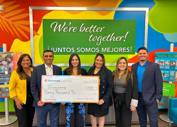 “Prospera is very grateful to Suncoast Credit Union for its generous and ongoing support of its mission in the Greater Tampa Bay Area and now also in Central Florida,” said Augusto Sanabria, Prospera, President & CEO. “Furthermore, representatives of Suncoast Credit Union serve as volunteers in our organization and directly impact our service delivery and community engagement efforts. We are excited about this partnership renewal and look forward to making an even bigger difference in our communities together.”