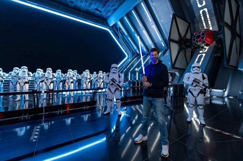 According to Disney, Tom Brady has starred in the iconic “I’m Going to Disney World!” commercial more times than any other NFL player. Brady ended up visiting Disney over the Easter weekend with family and friends, and he spent some time in Star Wars: Galaxy’s Edge at Disney’s Hollywood Studios. Brady must still have the good luck to avoid the Easter holiday tourist crowds!