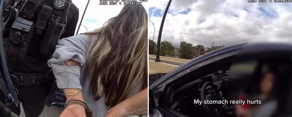 The Orlando Police Department said sorry, her stomach hurting was not an excuse to drive that fast on roadways and she was arrested.