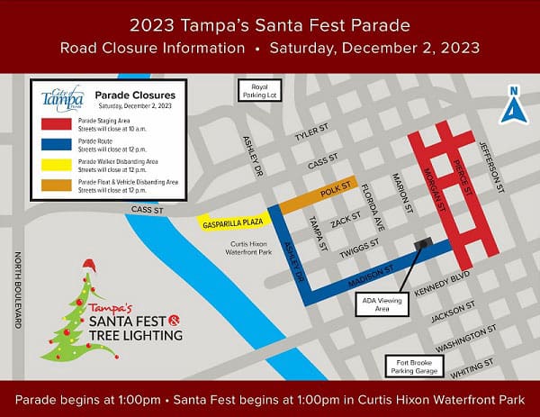 Parade goers are encouraged to stop by Curtis Hixon Waterfront Park for entertainment, make-n-take crafts, delicious food, and more at Santa Fest from 1:00pm-4:00pm.