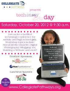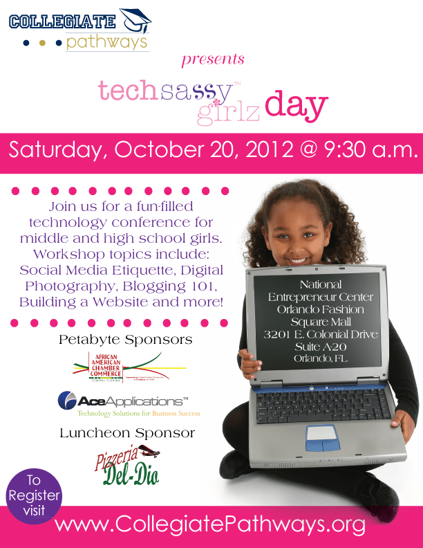 Tech Sassy Girlz Day Conference on Saturday, October 20th, is open to middle and high school girls in Lake, Orange, Osceola and Seminole counties. This one-day event will provide girls with a better understanding of the many aspects of technology and how it impacts their lives.
