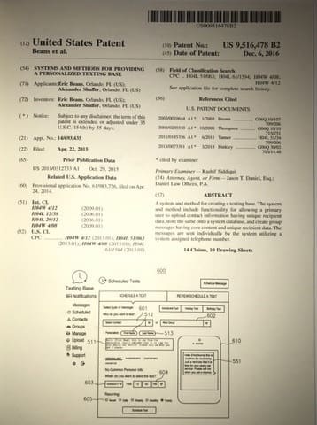 Texting Base, Inc. announced today the issuance to it by the United States Patent Office of a patent that covers the process of personalizing group texting in the sweeping trend of communication personalization. Texting Base is an SMS Marketing Automation Platform, which specializes in personalizing and scheduling group texts, and has headquarters in Orlando.