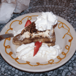 I wanted to write about the restaurant, the meals and the ambiance, but quickly realized that nothing is perfect. A food critic that expounds on the perfect pilaf may sell an image of perfection that others find falls short. So, given the fact that perfection is subjective, what makes me think that I can find perfection in anything? The concept of perfection is fleeting and difficult to define. It seems to me that striving for perfection may actually lead us further toward imperfection. As I said before, my taste buds don’t celebrate meals necessarily, but they do seem to work together with my other senses to remind me that sometimes life is nothing short of perfection. My wife shared a sample of her scampi with me and I a sample of coconut shrimp with her. We agreed that the food was incredible. In the brief time it took to sample each other’s food, my thoughts were flooded with fractals of memories. Images of our children’s births, first days of school, little league and graduations exploded through my mind. I felt my eyes filling with tears as I sat across from the lady who has at times defined the best of me and certainly witnessed the worst. “This is perfect.” I said again, trying to remain composed. Lauren then returned with an Anniversary present for my wife and me, a delightful tiramisu on a beautifully decorated plate, served compliments of the new owners on our special night. An amazing memory.