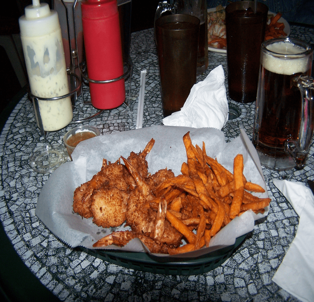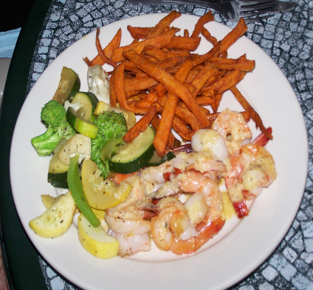 The steel drum music came to an end and musician Steve Hendrickson announced that he had a special event to announce. My wife looked at me in disbelief and embarrassed horror, “I want to wish this happy couple a wonderful 21st wedding Anniversary.” My wife and I smile and toasted our happiness. Lauren appeared with our plates and wished us a happy Anniversary. The food looked great! I know, that is hardly a critique, but to be honest… there is no plate of food that could have competed with the moonlight in my wife’s eyes. Since I did mention the food and restaurant, I will do my best to write like a real food critic. The shrimp was fresh and tasty, improved only by the sweet mango sauce that was generously provided. The sweet potato fries were thick and cooked to perfection. The sampling was generous and presented beautifully. My wife enjoyed a generous portion of shrimp scampi that was bathed in garlic butter to perfection and surrounded by crisp fresh steamed vegetables and sweet potato fries. Was the food perfect? Who knows, but it was definitely an integral element to a night that was perfect.
