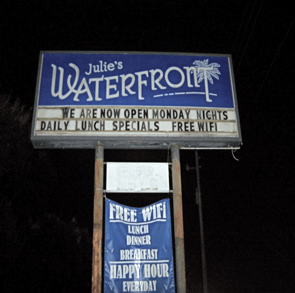 Disclaimer: The author has no personal or financial interest in Julie’s Waterfront and has not been reimbursed in any way for the above mention.