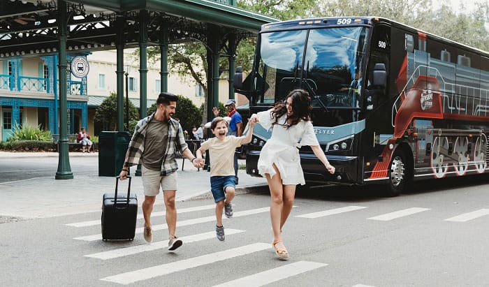 The Sunshine Flyer is a unique motorcoach bus experience from Transportation Management Services (TMS) that provides seamless transportation for guests from the Orlando International Airport (MCO) to Walt Disney World Resorts.