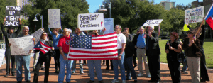 So far, what has been written in theatrespeak is called “exposition.” It is a device used by playwrights to advance the plot from what has gone on before to real time now. “The Swearing in Ceremony” is a one act play with two scenes. As the curtain rises on Scene one, we see a crowd of protesters demonstrating on the sidewalk in front of the County Commission. Led by Doug Head, they are a coalition of the Hispanic, Black and Latino Alliance along with members of Occupy Orlando protesting the appointment of John Martinez to the Orange County Commission seat for District Three. Head went on to explain the feeling of disenfranchisement that the community is feeling for the advantage of the people in power. Further insight into the problem is provided by State District 49 Representative Darren Soto. End of scene 1 Curtain.