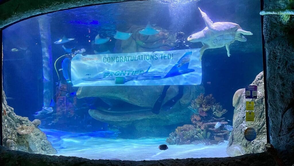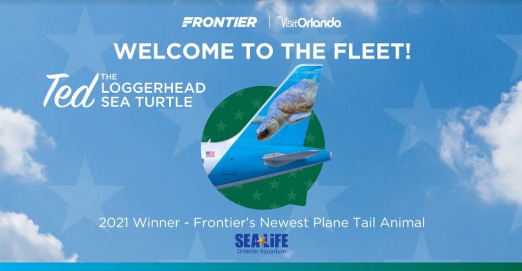 “We congratulate SEA LIFE Aquarium and Ted, the sea turtle, on this distinguished honor,” said Tyri Squyres, vice president of marketing, Frontier Airlines. “All Frontier Airlines plane tails feature an animal with a name and a backstory. A number of the tails feature endangered species – part of our effort to highlight animal conservation. We designed this promotion to bring some much-deserved attention to these facilities which are all dedicated to working to preserve Florida animal species. At the same time, it served to highlight some of the many terrific places consumers can visit while in the greater Orlando area.”
