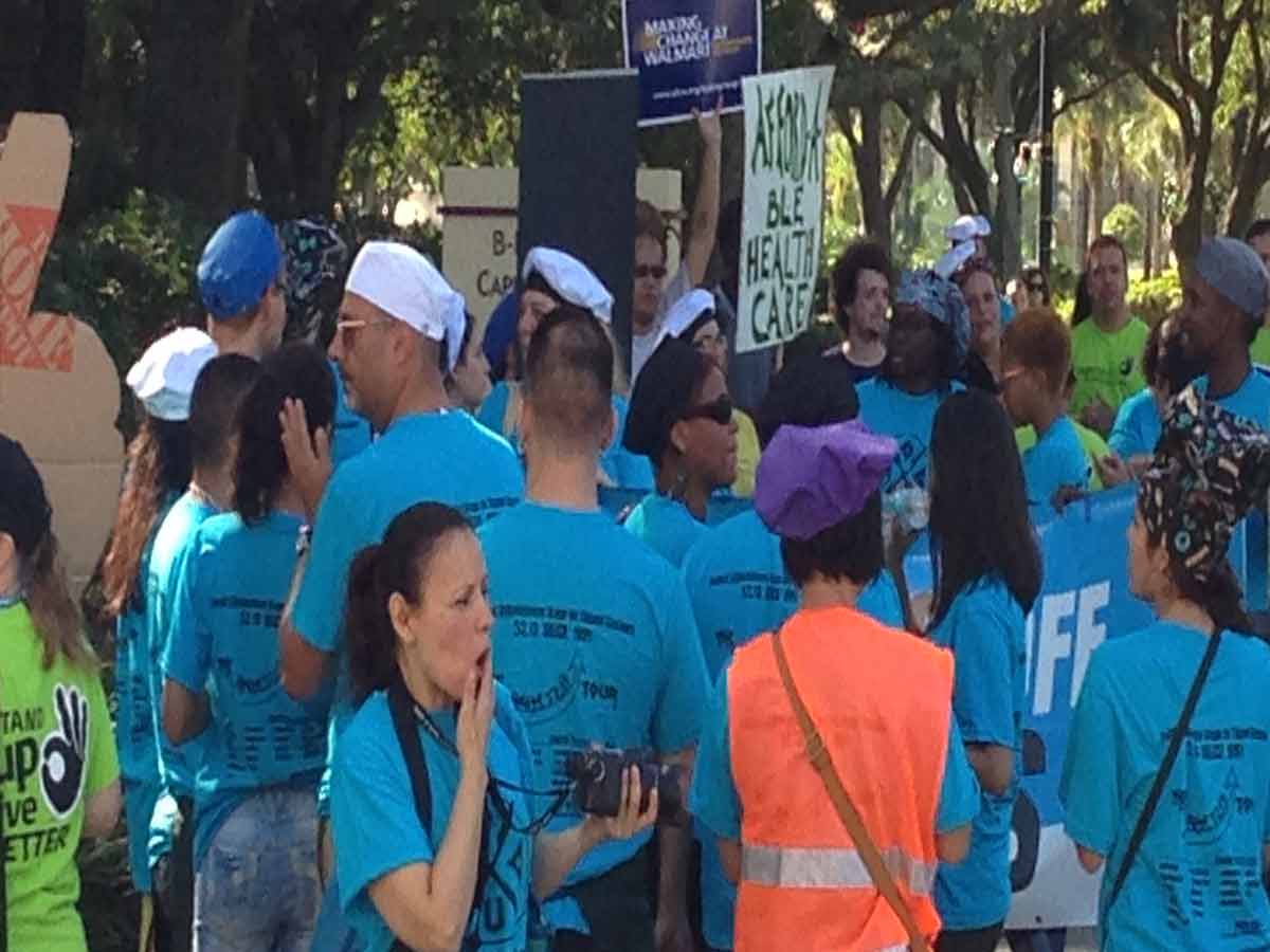 As shareholders of Darden Restaurants, the world’s largest full-service restaurant company, met behind closed doors at the Peabody Hotel in Orlando Wednesday, worker-led groups in the food industry from across the country rallied to demand livable wages and benefits.