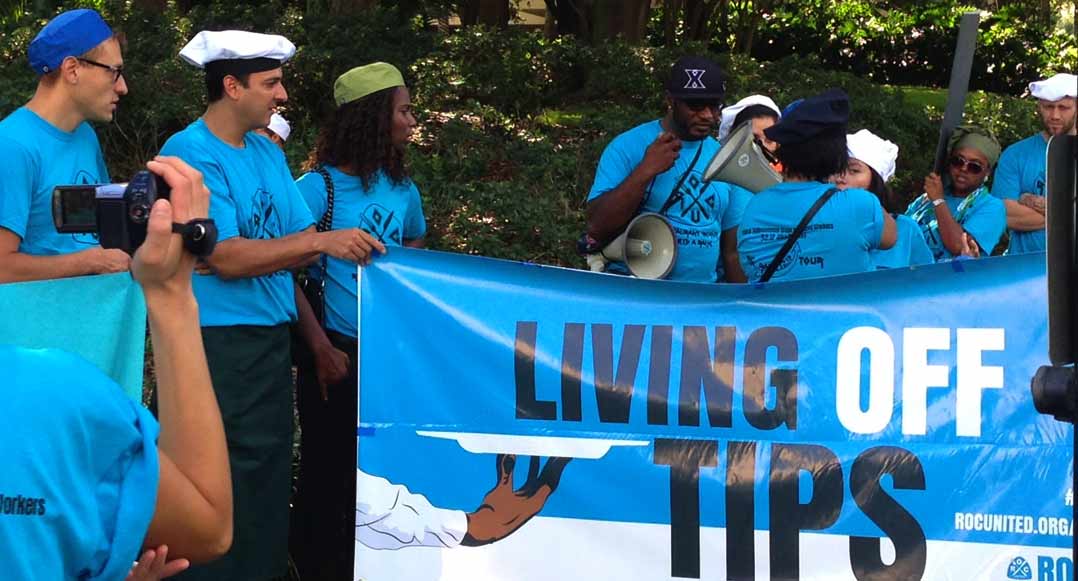 At today’s rally, the “Living Off Tips” campaign was publicly unveiled. The online campaign encourages tipped restaurant workers across the country to tell their stories, in order to generate support for raising the tipped minimum wage, stuck at $2.13 for the last 22 years.