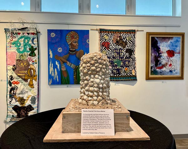 Visitors will learn about the Town’s Historic African American Cemetery, which was established in 1882 with burials continuing through the 1940s. The cemetery is the resting place of emancipated persons and families who migrated to West Orange County. The exhibition features a replica of an archaeologically significant African American seashell folk grave marker, similar to that found at the cemetery.