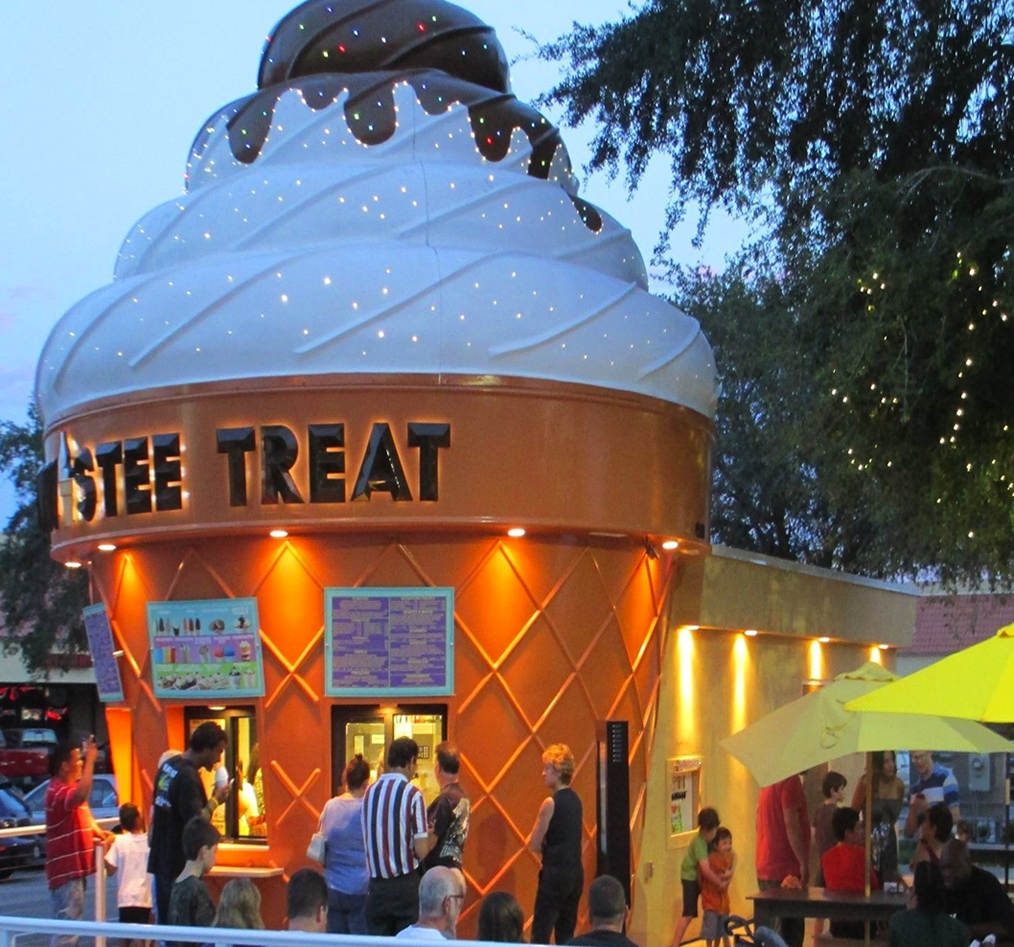 Twistee Treat first opened their distinctive ice cream-cone-shaped stores around Central Florida in 1983, and soon after sold franchises in the U.S. and Canada. When the company ran into financial problems and declared bankruptcy, the franchisees kept their stores and operated them as independent, successful businesses.