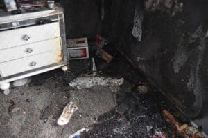 No injuries were reported in the fire. Broken pieces of a Don Julio Reposado Tequila bottle were found in the bedroom, along with cardboard from a mortar-style firework and copper foil.