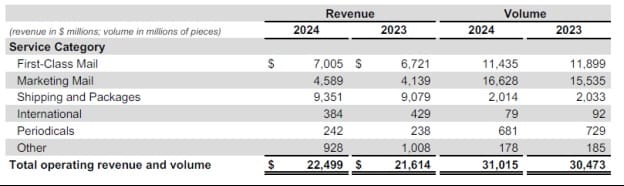 Marketing Mail revenue increased $450 million, or 10.9 percent, on a volume increase of 1.1 billion pieces, or 7.0 percent, compared to the same quarter last year. The Marketing Mail increases were driven by the effects of higher revenue and volume associated with the 2024 general election and strategic price increases. Revenue and volume from political and election mail, a component of Marketing Mail, increased by over $360 million and nearly 1.5 billion pieces, respectively, compared to the same quarter last year. Absent the impact of these cyclical mailings, Marketing Mail’s adjusted results for the quarter would have increased revenue $90 million, or 2.2 percent, and decreased volume 357 million pieces, or 2.3 percent, compared to the same quarter last year.